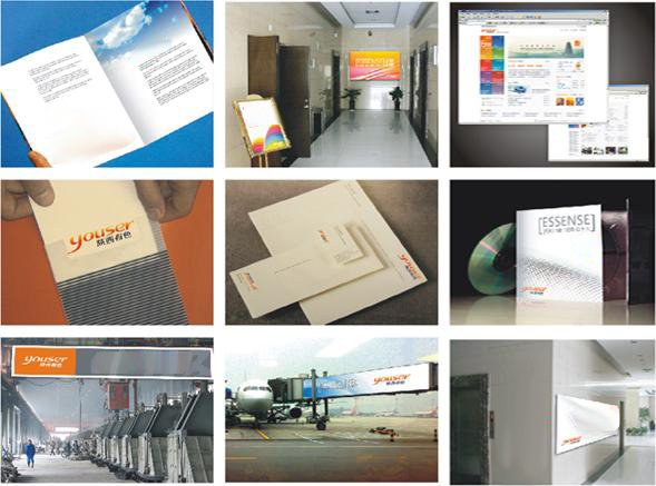 本部分展示了陜西有色的標(biāo)志、輔助圖形、理念在實(shí)際中的應(yīng)用,其中包括:企業(yè)畫冊(cè)、品牌文化手冊(cè)、員工培訓(xùn)手冊(cè)、理念海報(bào)、明信片、邀請(qǐng)函、信紙、信封、名片、CD、包裝盒、室內(nèi)理念傳播、廠區(qū)理念傳播、戶外廣告、戶外理念海報(bào)、展覽展示、網(wǎng)站等。