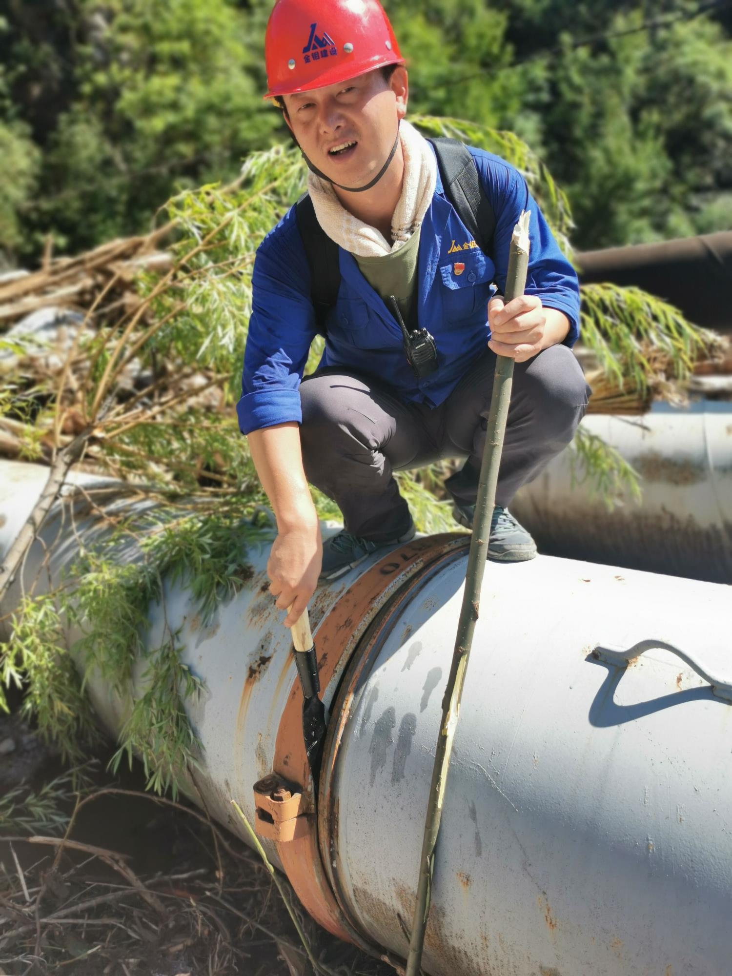 在栗西尾礦庫上壩道路打通后,他來不及休息,又接到王家坪尾礦輸送管線疏通的重任。他再次一馬當先,帶領(lǐng)搶險人員爬山涉水、翻山越嶺,徒步實地勘察管線受損情況,參與研究制定搶修作業(yè)方案。他們背著礦泉水、方便面,手腳并用爬過激流當?shù)赖臏o家溝路段,腳踩深達80多厘米的洞內(nèi)淤泥積水,從被亂石掩埋,高度只有30多厘米高的洞口夾縫中艱難爬出。他每天在泥濘中行走20余公里,從不退縮,一往無前。