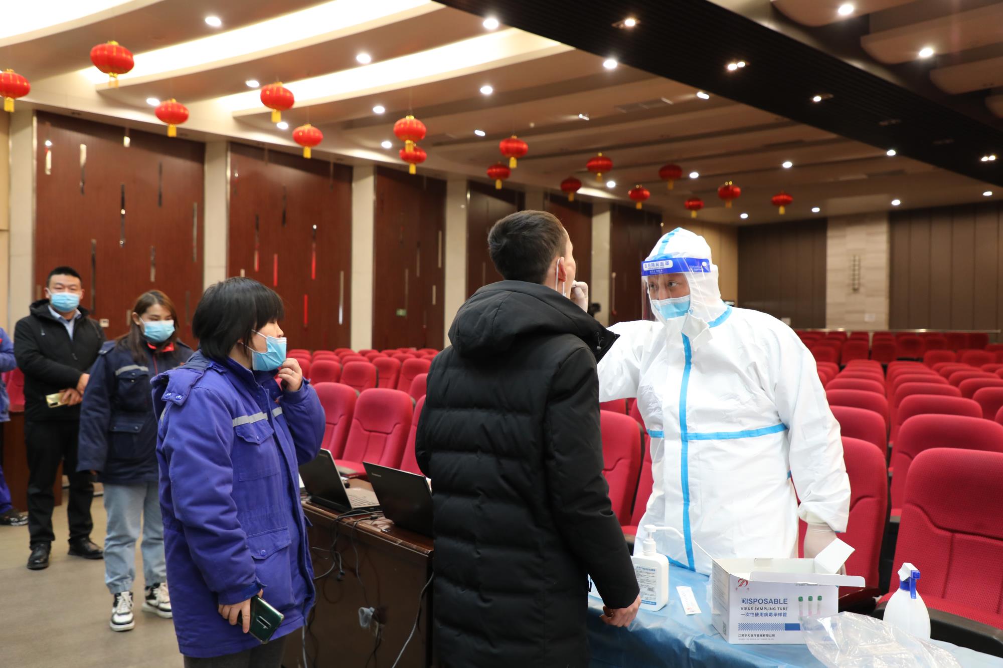 本次檢測(cè),榆林新材料集團(tuán)邀請(qǐng)了榆陽(yáng)區(qū)新明樓社區(qū)衛(wèi)生服務(wù)中心8名醫(yī)護(hù)工作人員,分4組在綜合樓五樓多功能廳、煤業(yè)公司消防救護(hù)隊(duì)設(shè)置臨時(shí)采樣點(diǎn)開展核酸檢測(cè)。
