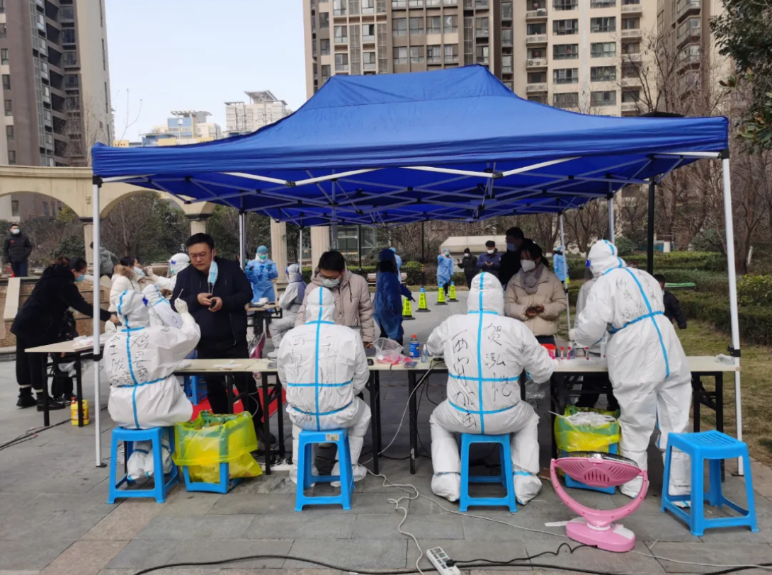 集團公司工會干部邵坤鵬主動協(xié)助維護核酸檢測秩序,并穿上防護服加入核酸檢測隊伍,配合醫(yī)務(wù)人員完成小區(qū)300多名住戶的核酸檢測任務(wù)。