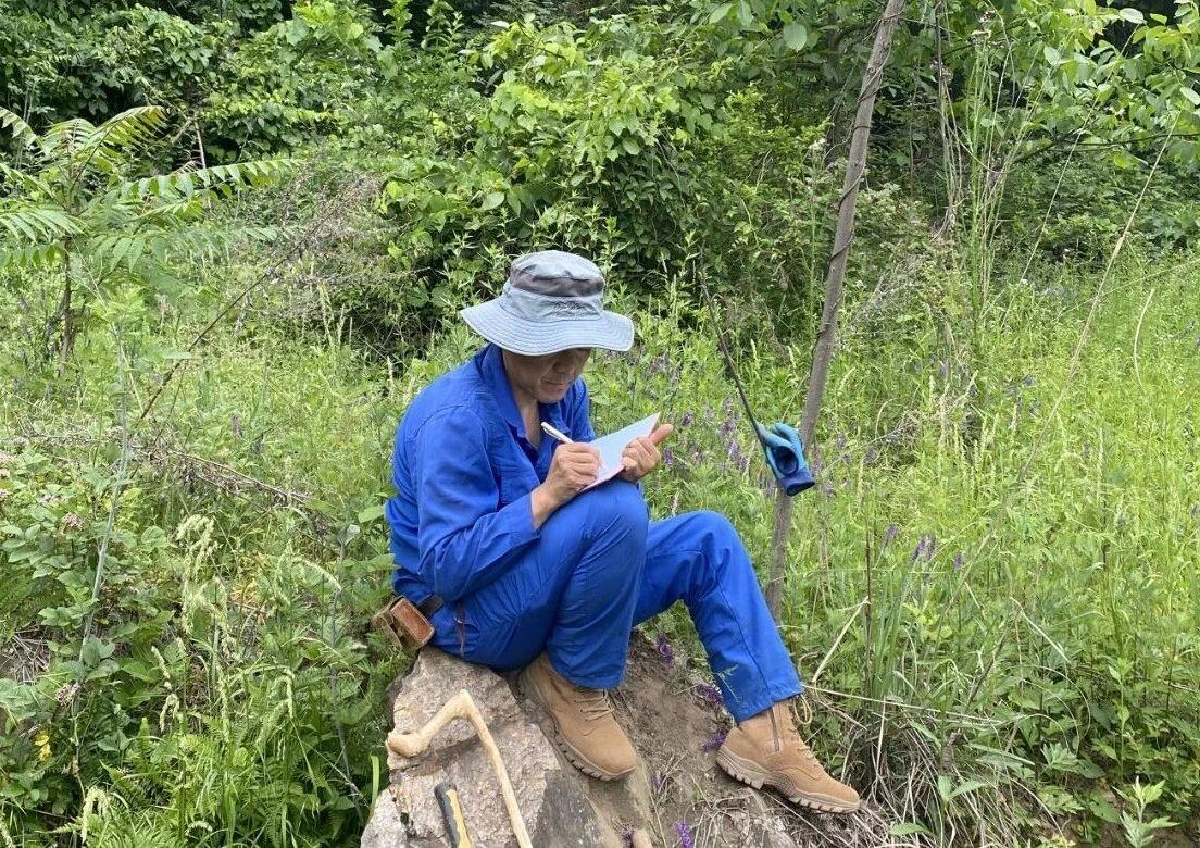 一旦天光微亮,雨勢暫歇,我與師兄楊澤男便立即帶上地質錘、羅盤和記錄本,直奔寨子溝。那里山勢陡峻,無路可循,我們便憑四肢攀援,靠工具借力,每一步都踏實得近乎笨拙。茂密的灌木叢時時牽扯衣褲,裸露的巖石在雨水沖刷后格外濕滑。行進雖緩,心境卻并不滯重。途中與師兄時而閑聊,時而就某個地質現(xiàn)象展開討論。喘息之間,我常想起老一輩地質人——他們沒有如今精密儀器,沒有輕便裝備,僅憑雙腿雙手、一支鉛筆,是如何踏遍這荒蕪崎嶇,又如何將整座山的地層與構造,理得清清楚楚?