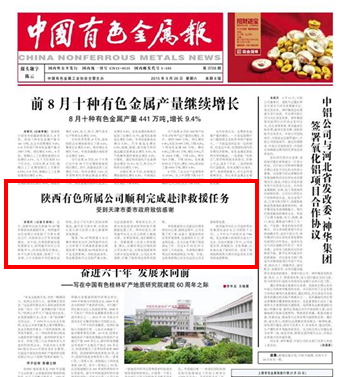 陜西盛華冶化公司是陜西有色集團(tuán)冶金礦業(yè)公司控股子公司,上半年生產(chǎn)硅鈣合金7986噸,是全球最大的硅鈣合金生產(chǎn)企業(yè)。在此次救援工作中,公司高度負(fù)責(zé)、積極配合、無(wú)私奉獻(xiàn),出色地完成了援助任務(wù),受到了現(xiàn)場(chǎng)指揮部和天津市安監(jiān)局有關(guān)領(lǐng)導(dǎo)的高度贊揚(yáng)。