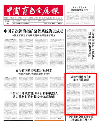 6月28日上午,陜西省省長(zhǎng)胡和平在陜西有色集團(tuán)董事長(zhǎng)、黨委書(shū)記黃曉平陪同下到陜西有色光電科技有限公司調(diào)研指導(dǎo)工業(yè)穩(wěn)增長(zhǎng)工作。陜西省政府秘書(shū)長(zhǎng)陳國(guó)強(qiáng),省級(jí)有關(guān)部門(mén)及西咸新區(qū)有關(guān)負(fù)責(zé)人參加調(diào)研。