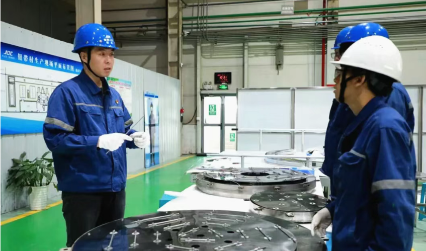 在金鉬股份金屬材料事業(yè)部鉬板材生產(chǎn)車間,面對小規(guī)格組件成形效率低的瓶頸,黨員工程師楊浩積極響應(yīng)黨組織“揭榜掛帥”號召,帶頭組建黨員突擊隊。攻關(guān)過程中,針對鉬鑭合金鉚釘易開裂難題,黨員技師帶頭反復(fù)試驗,固化關(guān)鍵工藝參數(shù)。面對單套筒體需完成8000余次鉚接的艱巨任務(wù),黨員班長堅守關(guān)鍵工位。為解決市場設(shè)備不匹配的困境,黨員骨干主動攻關(guān),自主設(shè)計專用工裝突破自動化瓶頸。在黨員團(tuán)隊的合力攻堅下,2025年累計交付數(shù)十套真空熱場鉬組件,成功突破薄板軋制與成套裝配全流程技術(shù),并培養(yǎng)出一支掌握核心工藝的技能隊伍,為高端熱場組件產(chǎn)業(yè)化奠定了堅實的技術(shù)與人才基礎(chǔ)。