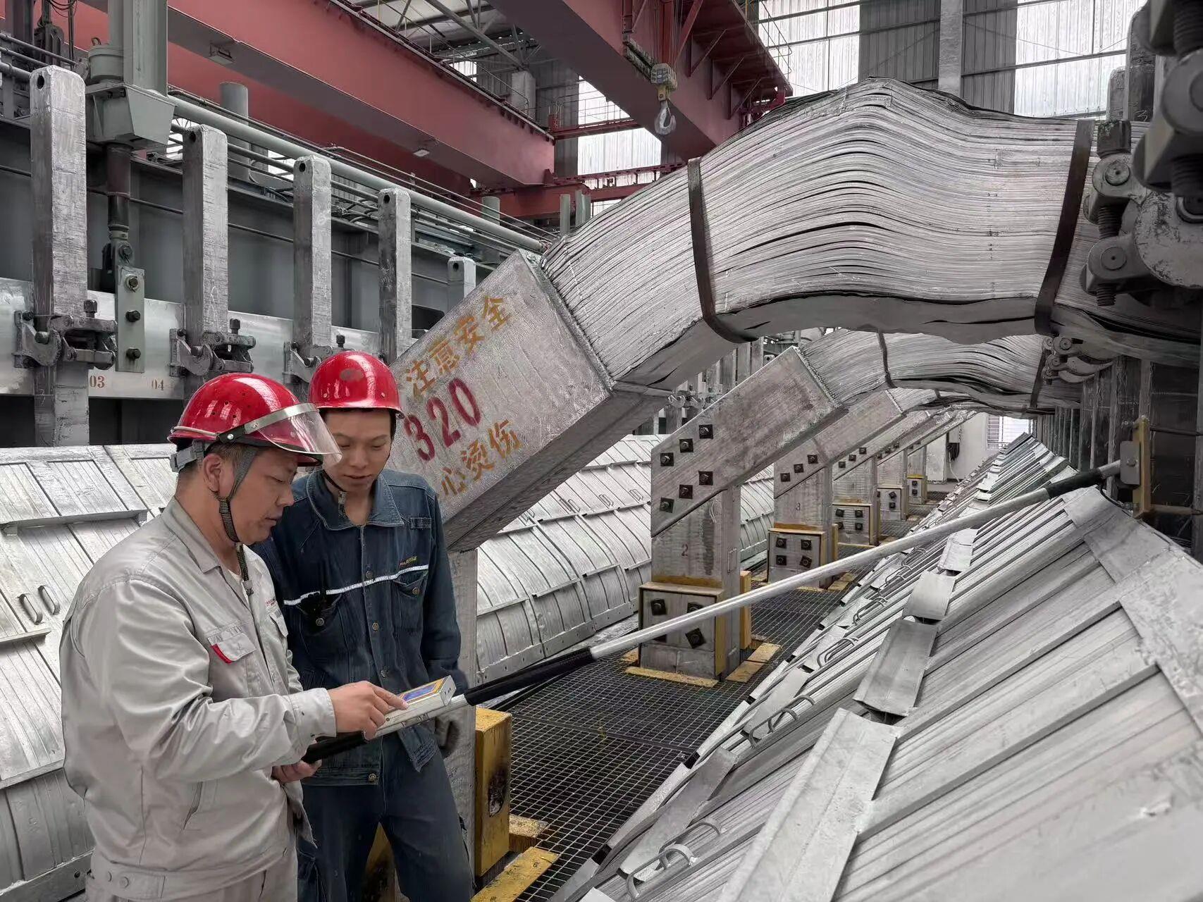 面對電解鋁生產(chǎn)中的技術(shù)瓶頸,任雷牽頭成立攻關(guān)小組,創(chuàng)新研發(fā)停槽區(qū)壓降管理裝置,一舉解決無功空耗問題,形成了可復(fù)制推廣的操作規(guī)范,為行業(yè)技術(shù)升級貢獻了“美鑫方案”。在任雷的帶領(lǐng)下,車間各項核心技術(shù)指標(biāo)持續(xù)優(yōu)化,2025年原鋁產(chǎn)量完成年度計劃的100.54%,高品質(zhì)原鋁產(chǎn)量提升,電流效率提升至91.6%,直流電耗、陽極消耗等關(guān)鍵指標(biāo)均顯著下降,達到行業(yè)先進水平。由任雷參與的“開槽陽極”等實驗成果推廣后,槽平均電壓降低8mV,噸鋁直流電耗減少22kW·h,真正實現(xiàn)了向技術(shù)創(chuàng)新要效益。