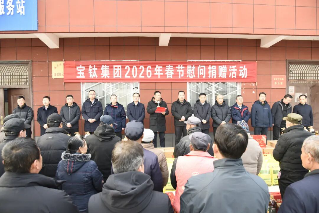 新春將至,暖意先行。2月4日上午,寶鈦集團黨委書記、董事長、鄉(xiāng)村振興領導小組組長王儉,黨委副書記、工會主席、鄉(xiāng)村振興領導小組副組長賀治民,總經(jīng)理助理、企管部主任、鄉(xiāng)村振興辦主任耿愛武一行,深入寶鈦集團定點幫扶村千陽縣城關鎮(zhèn)惠家溝村、崔家頭鎮(zhèn)趙家塬村,開展2026年春節(jié)走訪慰問活動,為困難群眾送上新春祝福與暖心關懷,把國企溫情送到群眾心坎上。