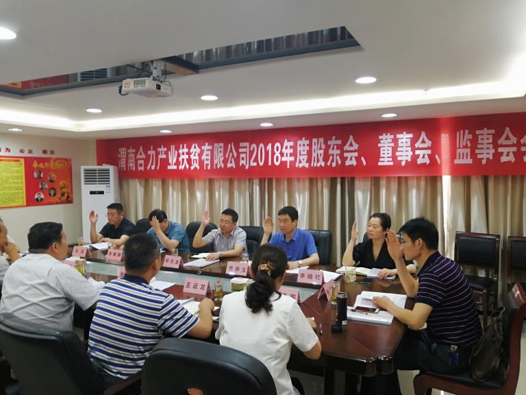 6月19日,渭南合力產(chǎn)業(yè)扶貧公司根據(jù)《公司法》《公司章程》召開(kāi)了2018年度東大會(huì)、董事會(huì)、監(jiān)事會(huì)。股東代表、董事、監(jiān)事出席了會(huì)議,會(huì)議由董事長(zhǎng)張軍春主持。會(huì)議審議通過(guò)了《2018年度工作總結(jié)及2019年工作計(jì)劃報(bào)告》《2018年度財(cái)務(wù)決算報(bào)告2019年財(cái)務(wù)預(yù)算報(bào)告》《2018年度董事會(huì)工作報(bào)告》《2018年度監(jiān)事會(huì)工作報(bào)告》《關(guān)于白水縣經(jīng)濟(jì)發(fā)展有限公司雷公循環(huán)經(jīng)濟(jì)產(chǎn)業(yè)園區(qū)產(chǎn)業(yè)扶貧標(biāo)準(zhǔn)化廠房建設(shè)項(xiàng)目的議案》等議案。