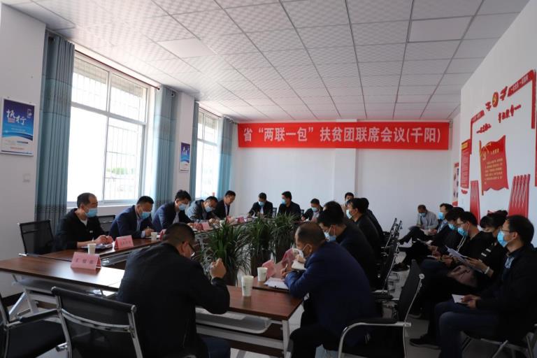 2020年4月26日,陜西有色扶貧團省級“兩聯(lián)一包”第一次聯(lián)席會在陜西有色千陽產(chǎn)業(yè)扶貧有限公司會議室召開,千陽縣扶貧辦、扶干辦相關(guān)負責人,扶貧團各成員單位分管領(lǐng)導、駐村隊員共30余人參加會議。會議由千陽縣政府副縣長楊軍輝主持,陜西有色集團扶貧辦主任、千陽扶貧公司黨支部書記、董事長艾軍參加會議并作了講話。