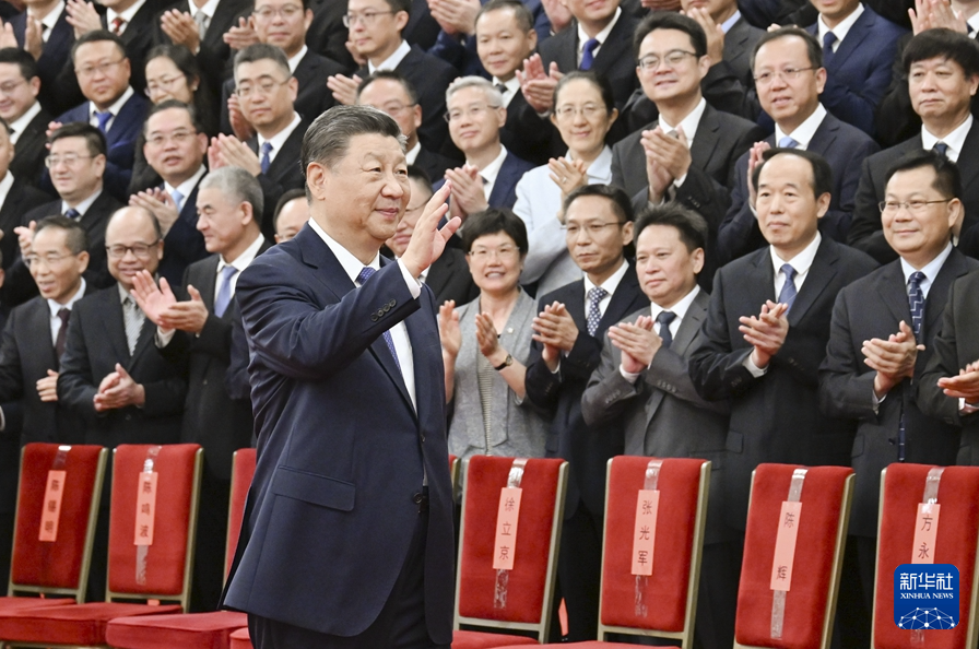 上午10時許,習近平等黨和國家領導人來到人民大會堂北大廳,全場響起長時間熱烈掌聲。習近平等同大家親切握手,并合影留念。