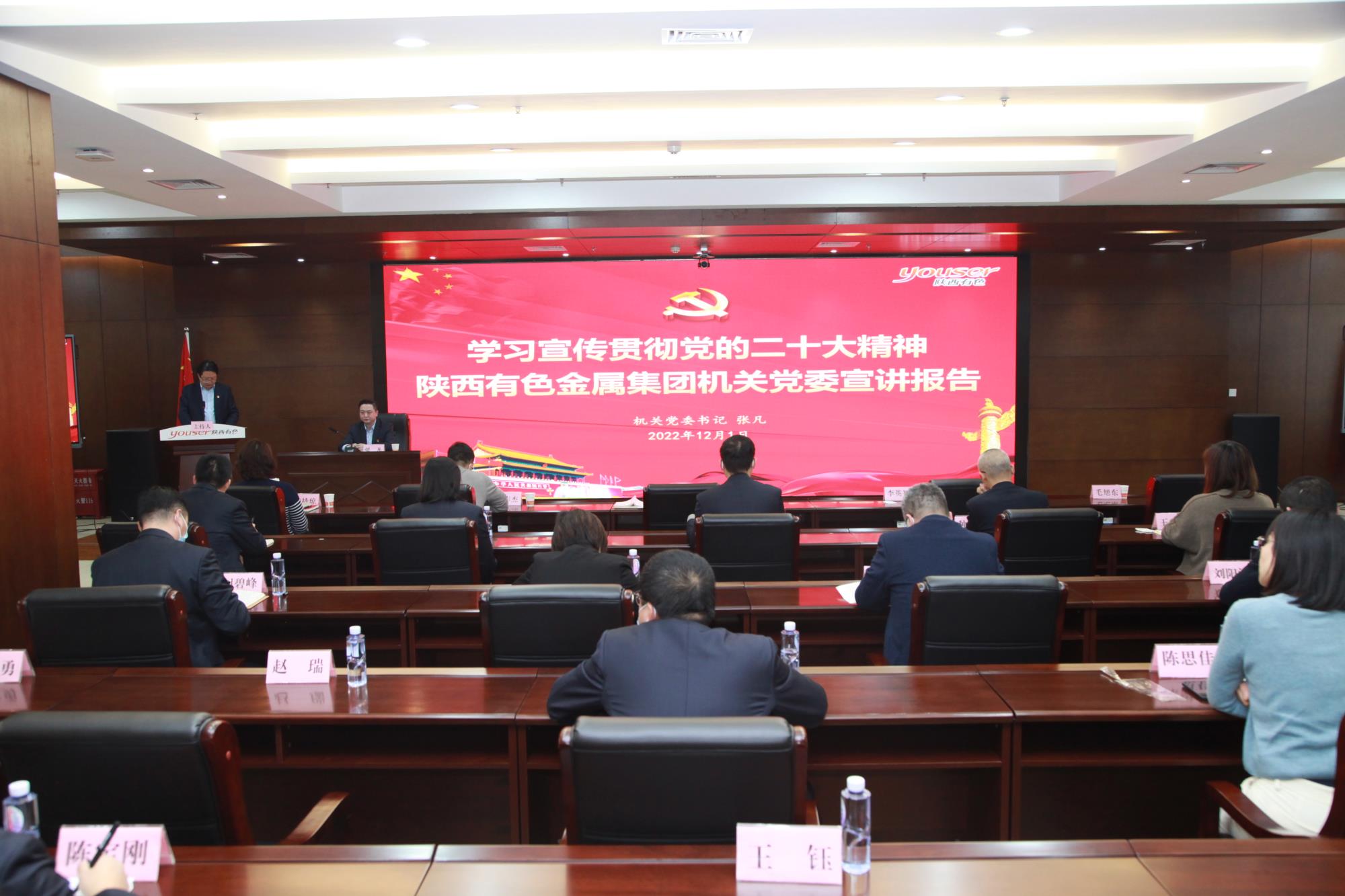 12月1日,陜西有色金屬集團機關黨委舉行學習貫徹黨的二十大精神宣講報告會。機關黨委書記張凡作宣講報告,并對總部機關各支部學習貫徹工作提出具體要求。