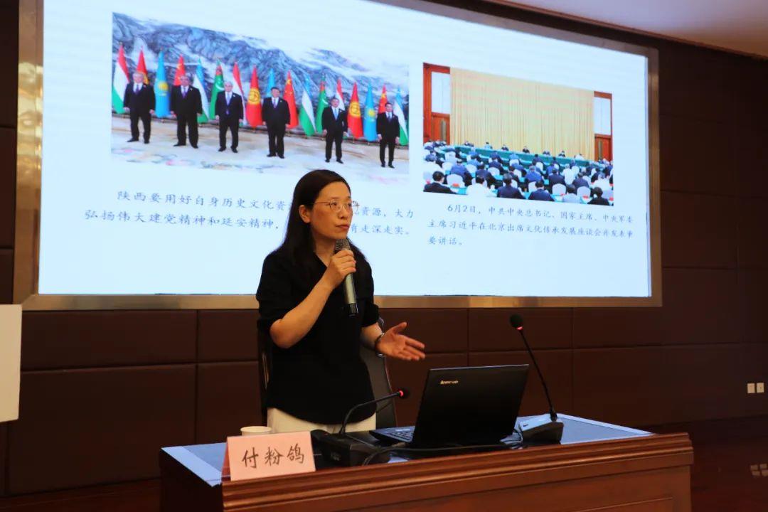 省委理論講師團(tuán)專家學(xué)者、西北大學(xué)馬克思主義學(xué)院付粉鴿教授作了題為《利用好歷史文化資源,勇立潮頭,在推進(jìn)文化自信自強(qiáng)上展現(xiàn)陜西擔(dān)當(dāng)》的專題宣講,宣講從推進(jìn)文化自信自強(qiáng),努力建設(shè)中華民族現(xiàn)代文明、挖掘和利用好自身歷史文化資源,助推陜西高質(zhì)量發(fā)展、勇立潮頭,為鑄就社會(huì)主義文化新輝煌貢獻(xiàn)陜西力量三個(gè)方面,深入淺出、生動(dòng)活潑的闡述了中華優(yōu)秀傳統(tǒng)文化的當(dāng)代價(jià)值以及充分發(fā)揮陜西歷史文化資源優(yōu)勢,做強(qiáng)做優(yōu)陜西文化產(chǎn)業(yè),全面深入解讀了習(xí)近平總書記在聽取陜西省委和省政府工作匯報(bào)時(shí)的重要講話精神。報(bào)告思路清晰、主題明確,為與會(huì)人員上了一堂生動(dòng)的傳統(tǒng)文化課。