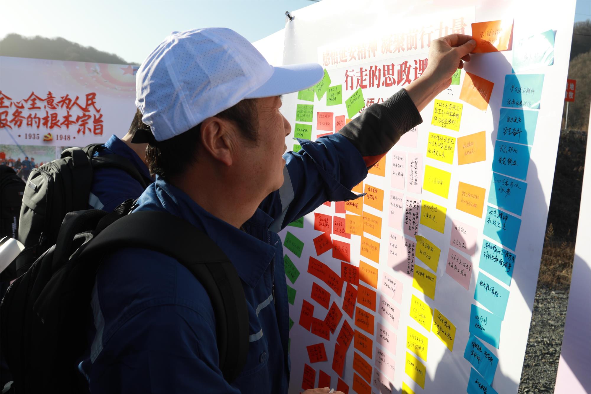 行至終點,研討交流拉開帷幕,大家紛紛拿起便簽紙,抒寫感悟、暢談心得……一陣陣激烈研討交流過后,展板上貼滿了干事創(chuàng)業(yè)的激情和立足崗位建新功的誓言。