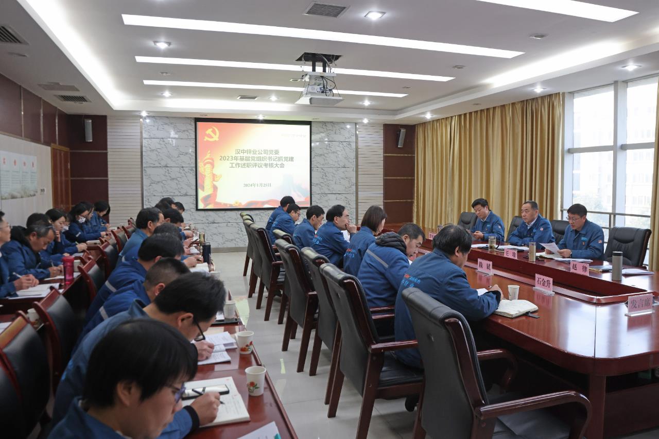1月25日,漢中鋅業(yè)公司在三樓第一會(huì)議室召開2023年度黨組織書記抓基層黨建工作述職評(píng)議考核大會(huì)。公司黨委書記、董事長(zhǎng)楊海東出席會(huì)議并進(jìn)行了點(diǎn)評(píng)。公司黨委副書記、總經(jīng)理王瑜學(xué)習(xí)傳達(dá)陜西有色金屬集團(tuán)黨委2023年度黨組織書記抓基層黨建工作述職評(píng)議考核會(huì)議精神。公司黨委副書記、工會(huì)主席路延忠主持會(huì)議。