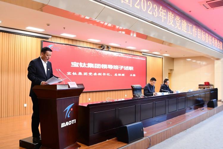 寶鈦集團(tuán)黨委副書記、總經(jīng)理王儉代表集團(tuán)領(lǐng)導(dǎo)班子述職。他從企業(yè)經(jīng)營(yíng)業(yè)績(jī)完成情況、黨建工作目標(biāo)責(zé)任完成情況、存在問題及原因分析等三個(gè)方面詳細(xì)匯報(bào)了寶鈦集團(tuán)2023年工作,并提出了2024年工作舉措。