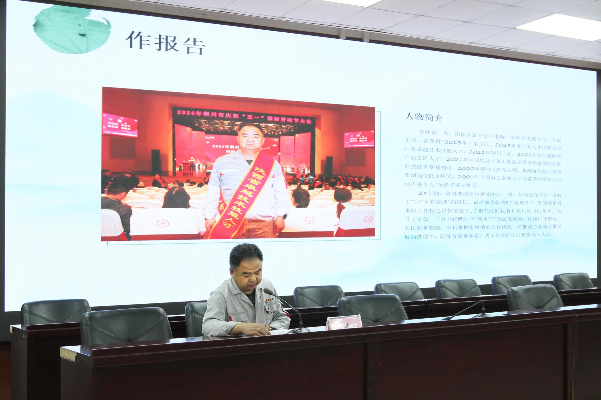 在作報(bào)告環(huán)節(jié),陜西美鑫公司職工代表—“三秦工匠”陳繼普為大家分享了他在工作中體會(huì)的感悟。1994年被招工到銅川鋁廠,他一干就是三十年,從電解工到小組長(zhǎng)、班長(zhǎng)、工區(qū)長(zhǎng)、車(chē)間主任,從派遣外出受所在單位表彰到進(jìn)入鋁鎂合金分公司,從“2020年銅川市首席技師”到“2023年三秦工匠”,他一步一個(gè)腳印踏踏實(shí)實(shí)地努力,在平凡的崗位上默默耕耘。他勇于擔(dān)當(dāng)、敬業(yè)奉獻(xiàn)的先進(jìn)事跡也深深打動(dòng)了在場(chǎng)的每一位職工,大家紛紛表示要以他們?yōu)榘駱樱粩嗵嵘约旱牡赖滦摒B(yǎng)和工作能力,不懈耕耘、孜孜以求,創(chuàng)造無(wú)怨無(wú)悔人生。