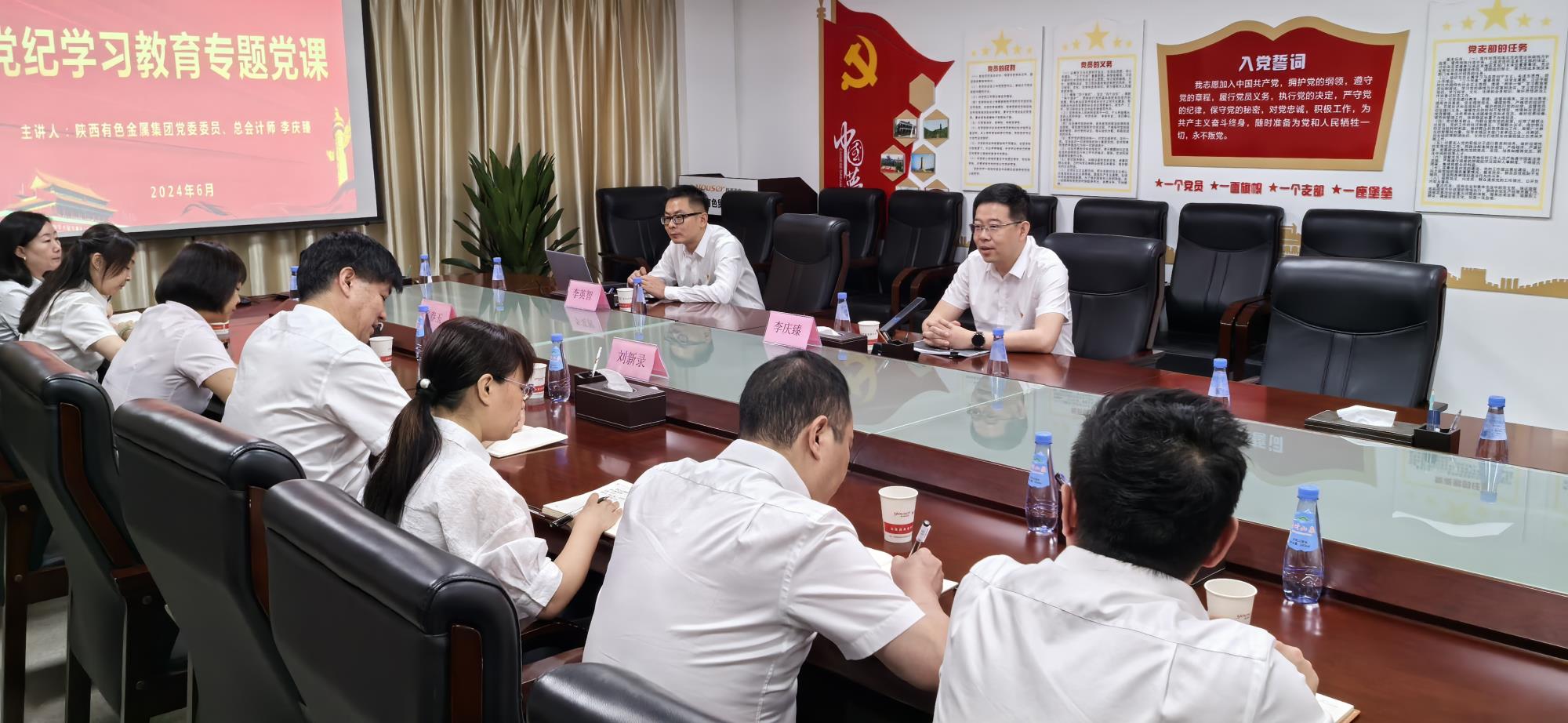 在全黨上下喜迎“七一”之際,在集團公司全力沖刺半年目標任務之時,為深入貫徹落實習近平總書記關(guān)于黨紀學習教育重要講話重要指示精神,推動黨紀學習教育走深走實,引導廣大黨員干部學紀、知紀、明紀、守紀,6月25日,陜西有色金屬集團黨委委員、總會計師李慶臻到貿(mào)易公司講授黨紀學習教育專題黨課,公司領(lǐng)導班子成員、中層干部及黨群部門人員參加會議。