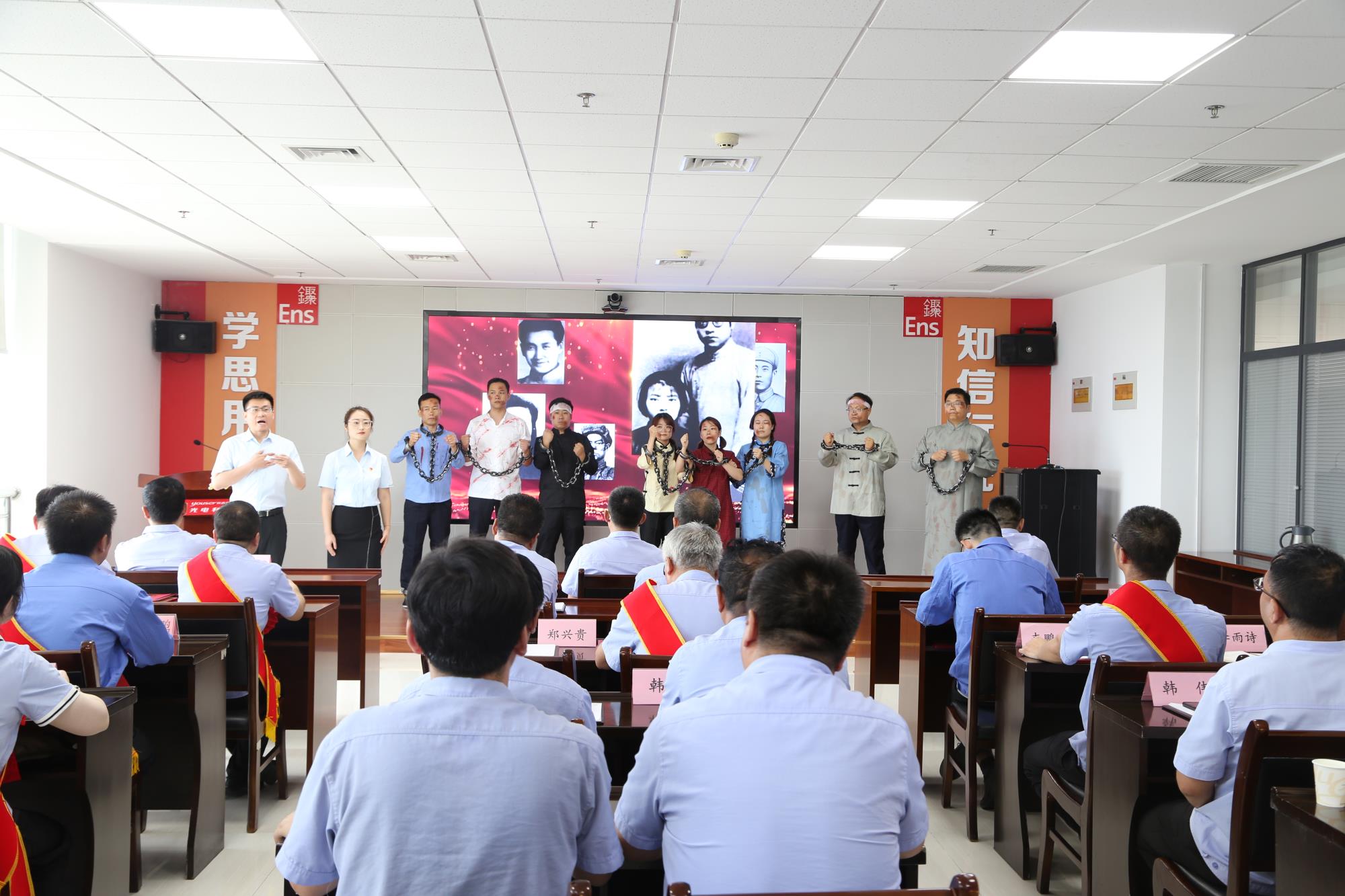 隨后,與會(huì)人員回顧黨的崢嶸歲月,觀看榜樣視頻:《路生梅:扎根陜北綻芳華,為黨工作無(wú)期限》與情景劇表演:《清澈的愛(ài),只為中國(guó)》。