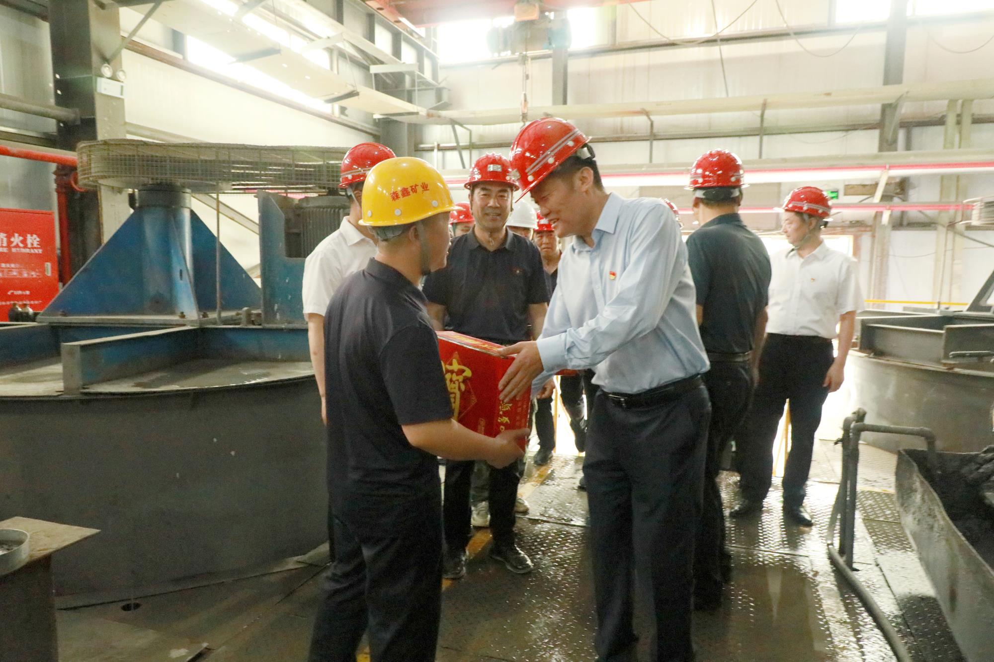 7月4日,陜西有色金屬集團(tuán)黨委副書記、董事、工會(huì)主席王小慶到森鑫礦業(yè)公司調(diào)研指導(dǎo)工作,講授黨紀(jì)學(xué)習(xí)教育專題黨課并開展“送清涼”慰問活動(dòng)。地礦集團(tuán)、黃金集團(tuán)黨委書記、董事長(zhǎng)秦西社等陪同調(diào)研。
