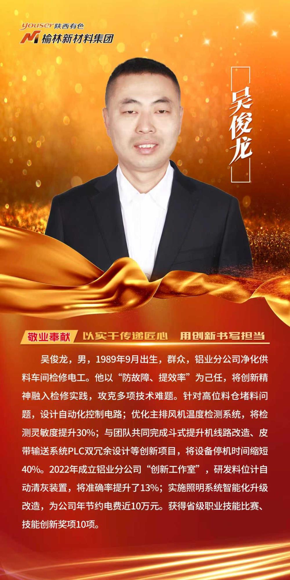 發(fā)布儀式上,榆林新材料集團(tuán)合金分公司鑄造車間鑄造工曹孝孝被授予“助人為樂好人”;鋁業(yè)分公司凈化供料車間檢修電工吳俊龍被授予“敬業(yè)奉獻(xiàn)好人”;鋁業(yè)分公司電解三車間多功能天車工雍樂被授予“孝老愛親好人”;鋁業(yè)分公司供電車間高壓運(yùn)行工段秀麗被授予“自強(qiáng)勵(lì)志好人”。