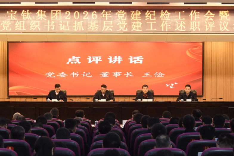 3月10日,寶鈦集團(tuán)2026年黨建紀(jì)檢工作會(huì)暨2025年度黨組織書(shū)記抓基層黨建工作述職評(píng)議考核會(huì)在寶鈦賓館七樓學(xué)術(shù)報(bào)告廳召開(kāi)。寶鈦集團(tuán)黨委書(shū)記、董事長(zhǎng)王儉出席會(huì)議并講話,寶鈦集團(tuán)黨委副書(shū)記、總經(jīng)理陳戰(zhàn)乾主持會(huì)議。