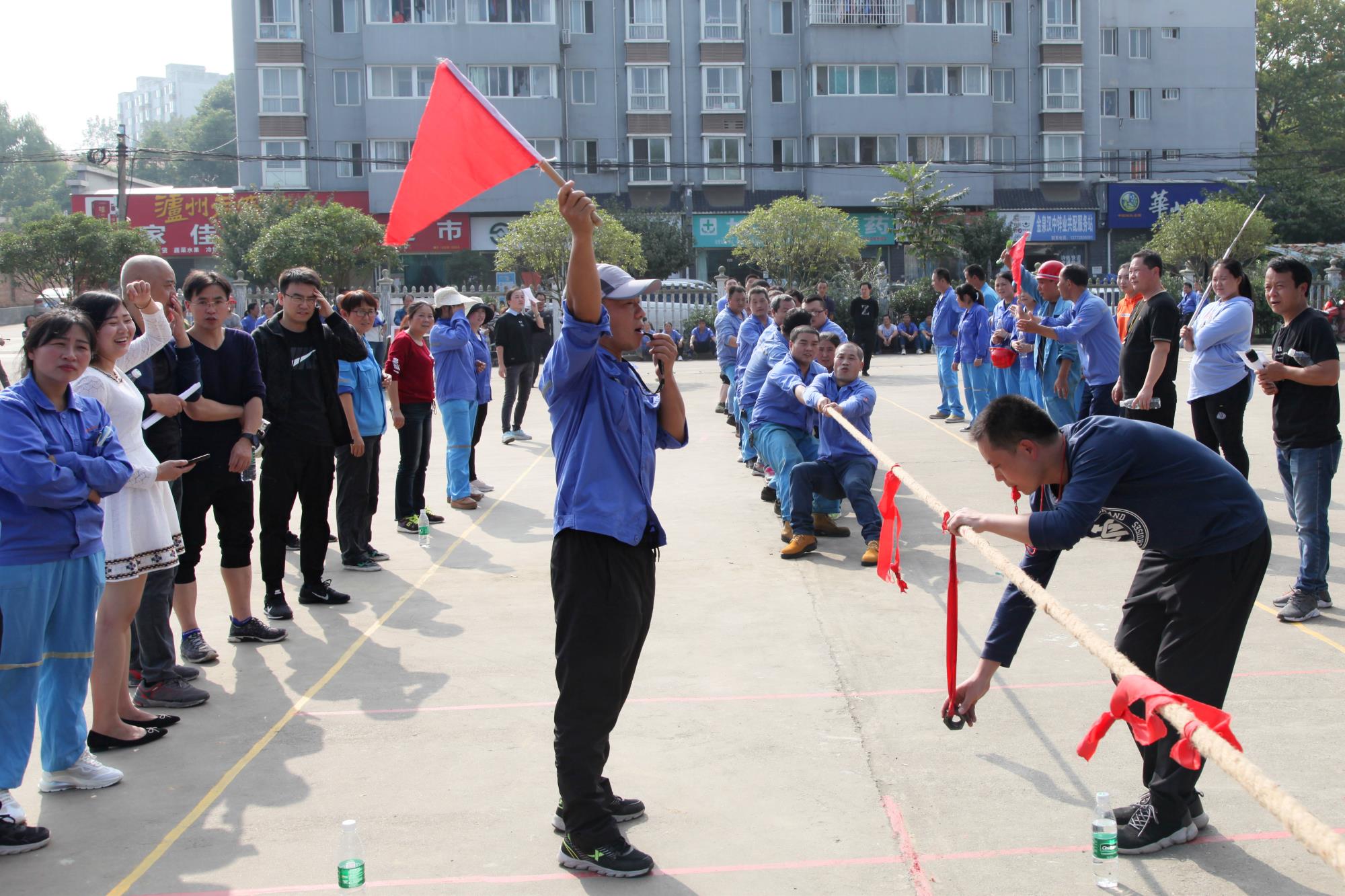 金風送爽,丹桂飄香。下午14時30分,公司總部職工文化活動中心人聲鼎沸,熱鬧非凡。拔河比賽在緊張、激烈的氣氛中開始,在宣布完比賽規(guī)則,隨著裁判一聲哨響,比賽現(xiàn)場立刻沸騰起來。加油聲此起彼伏,一浪高過一浪!在拉拉隊的“加油”助威聲中,每支參賽隊都卯足了勁,隊員們都漲紅了臉,大家都抓緊了繩,全力以赴,激烈的比賽將整個活動推向了一個又一個高潮!