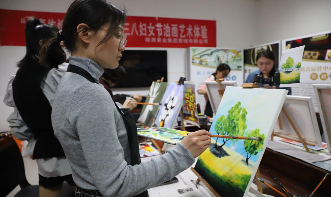 黃金營銷公司 營銷公司工會組織女職工開展“丹青傳情·歡樂共享”三八婦女節(jié)油畫藝術(shù)體驗活動。大家在油畫老師的指導(dǎo)下進(jìn)行零基礎(chǔ)學(xué)習(xí)?;顒託夥諢崃?,調(diào)顏料、打線稿,大家互相欣賞、拍照留念。