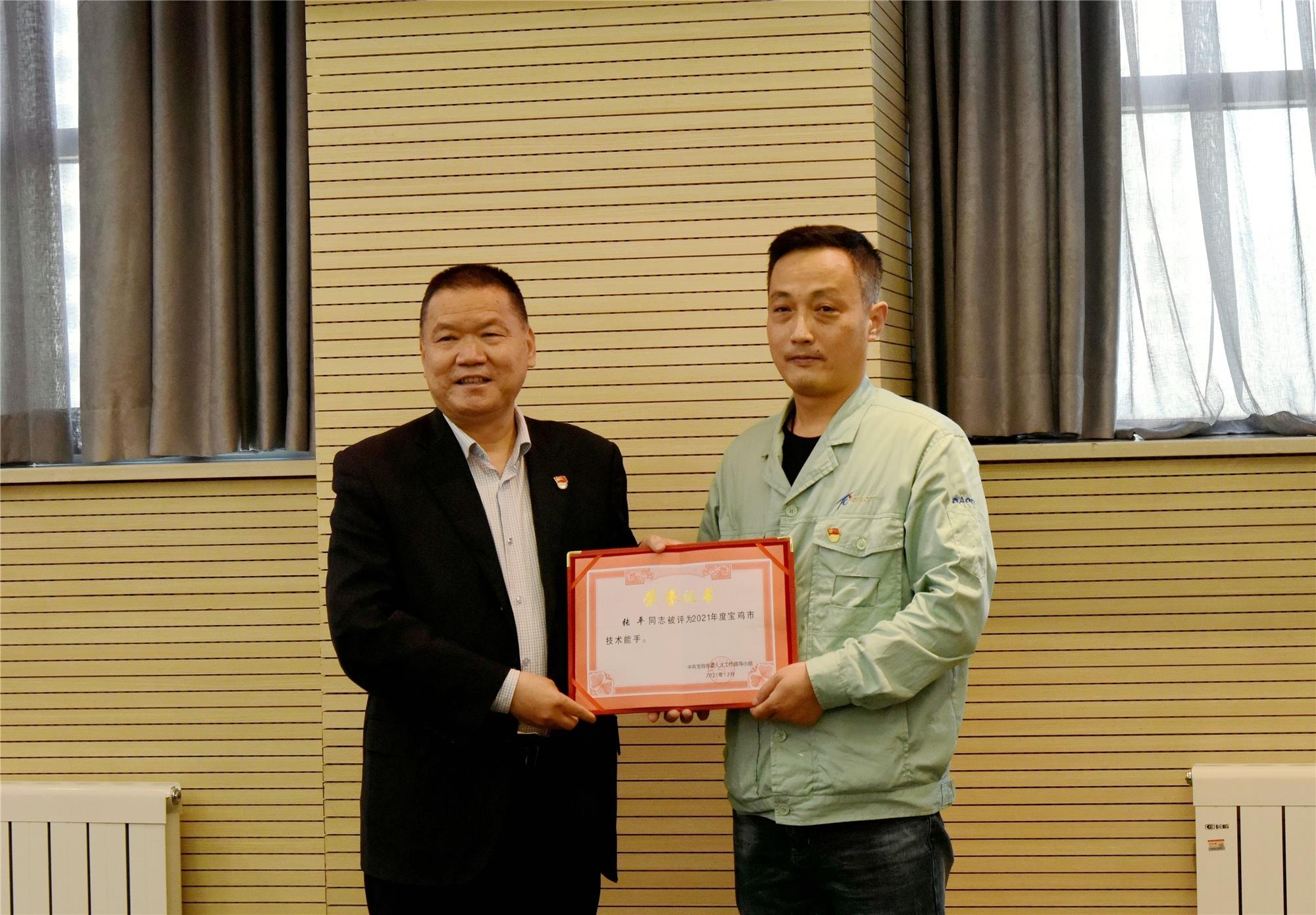 會(huì)上,王建超還為榮獲2021年度寶雞市首席技師的肖小紅和寶雞市技術(shù)能手的張平頒發(fā)了榮譽(yù)證書。