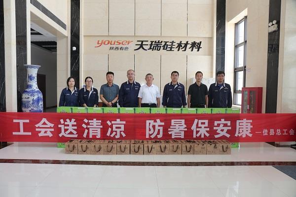 夏日天氣炎炎,氣溫節(jié)節(jié)攀升,7月19日,佳縣總工會人大副主任、工會主席李占明一行來陜西有色天瑞硅材料公司開展夏季“送清涼”慰問活動。
