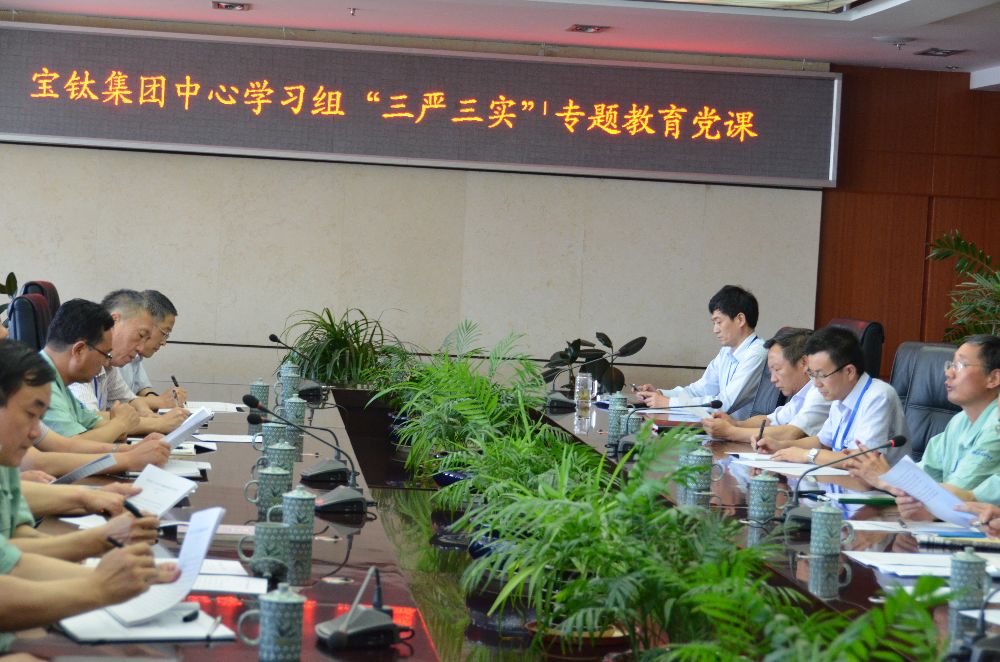 6月9日,寶鈦集團黨委中心學(xué)習(xí)組在機關(guān)九樓會議室召開“三嚴三實”專題學(xué)習(xí)會,集中學(xué)習(xí)了習(xí)近平總書記關(guān)于“三嚴三實”的論述以及省委書記趙正永在全省“三嚴三實”專題教育黨課會議上的講話。隨后,黨委書記王文生作了題為《樹立嚴實工作態(tài)度,創(chuàng)新驅(qū)動企業(yè)發(fā)展》的專題教育黨課。公司領(lǐng)導(dǎo)班子成員及部分副總、黨委部門負責(zé)人參加了會議。 王文生指出,4月10日,中央專門下發(fā)《關(guān)于在縣處級以上領(lǐng)導(dǎo)干部中開展“三嚴三實”專題教育方案》,對專題教育的總體要求、方法措施、組織領(lǐng)導(dǎo)作出了安排部署。5月27日,陜西有色集團召開“三嚴三實”專題教育黨課會議,并要求從五月份開始全系統(tǒng)進行“三嚴三實”專題教育,黃曉平書記為大家講了黨課。根據(jù)上級部署,這次教育不以抓集中活動的形式開展,而是要作為重大政治任務(wù)融入領(lǐng)導(dǎo)干部經(jīng)常性學(xué)習(xí)教育,與日常工作有機融合、相互促進。我們要將學(xué)習(xí)提高認識貫穿始終,采取個人自學(xué)與中心組學(xué)習(xí)相結(jié)合的方式 ,領(lǐng)導(dǎo)要帶頭講好專題黨課。專題教育的形式,以領(lǐng)導(dǎo)干部講黨課啟動開局,領(lǐng)導(dǎo)班子其他成員也要在適當(dāng)范圍講黨課,今年的民主生活會和組織生活會,也要以“三嚴三實”為主題,起點要高,要求要嚴。 王文生強調(diào),要把嚴實的工作方法落到實處,有規(guī)劃、有步驟地作好企業(yè)發(fā)展中的各項工作。要在“一帶一路”、“中國制造2025”戰(zhàn)略、“工業(yè)4.0”等重大機遇面前,加快公司的“兩化融合”步伐,以創(chuàng)新驅(qū)動企業(yè)發(fā)展。要通過“三嚴三實”專題教育,對黨員領(lǐng)導(dǎo)干部的精神狀態(tài)、作風(fēng)養(yǎng)成、能力素質(zhì)提出更高標(biāo)準、更高要求,打造一支高素質(zhì)的干部隊伍,團結(jié)帶領(lǐng)廣大職工群眾高效推進企業(yè)的改革發(fā)展。